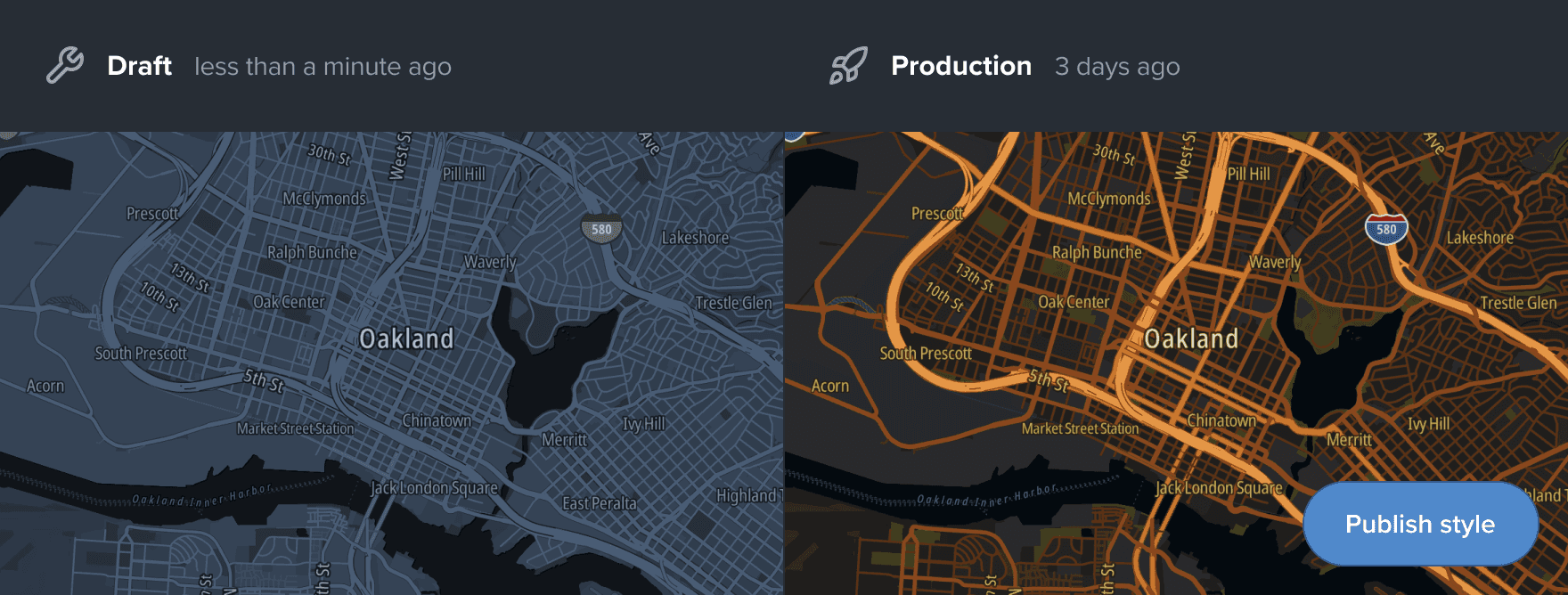 Problem: map styles were difficult to manage once they reached production. Any change risked breaking live experiences, and there was no clear way to test, compare, or validate updates before deployment. This made iteration slow and discouraged experimentation.