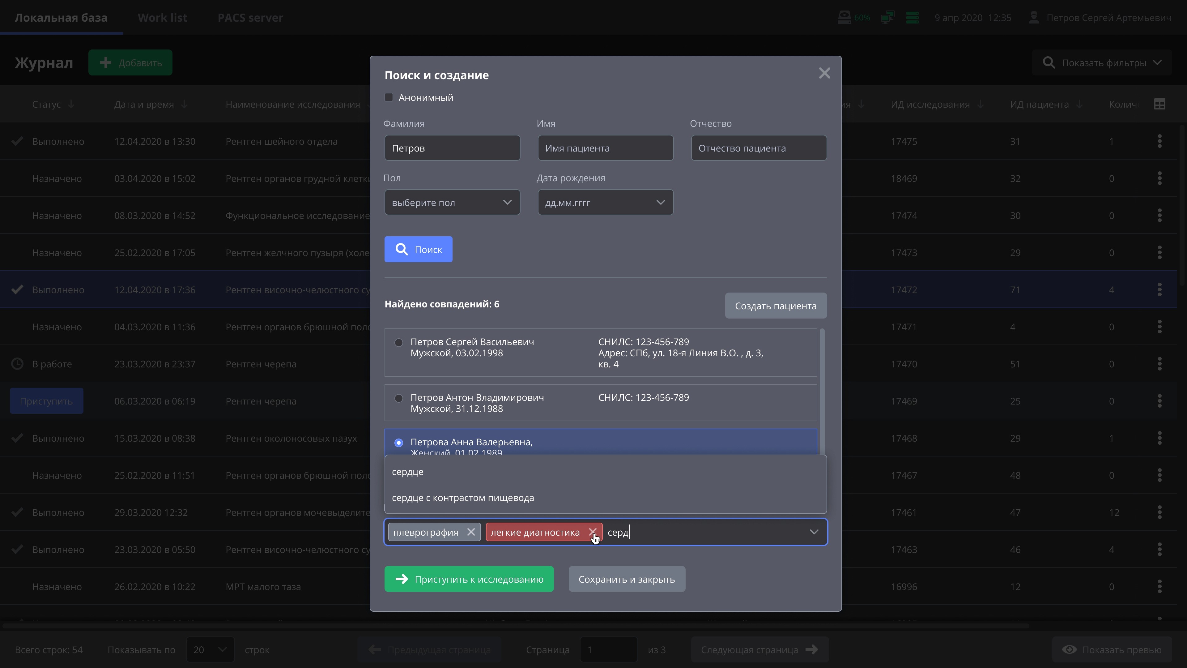 In this "stick or carrot" dilemma you should always choose carrot. Previously there are used to be two separate pop-up windows for creating a patients card and checking for duplicates. Simple and elegant decision was to merge those two windows. The first thing lab assistant sees is a search form. If two or more data strings match the existing patient's data, assistant is invited to proceed into this patient's card and create new study in it. If there are no matches for entered data, this data is now considered not a "search criteria", but a strings for new patient's card.